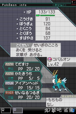 属性:钢/格斗 种族:91 90 129 90 72 108 帮手+讨伐(70 100 5上回合己方有怪兽被击倒时,伤害翻倍)+钢铁头槌+神圣之剑(90 100 20无视目标防御等级)